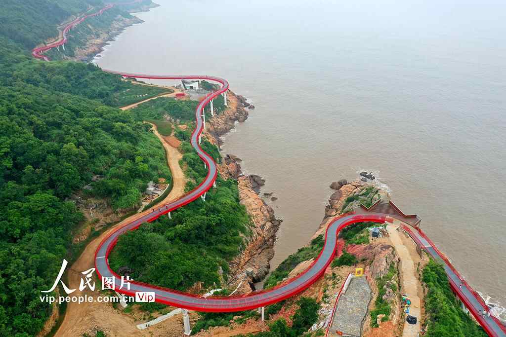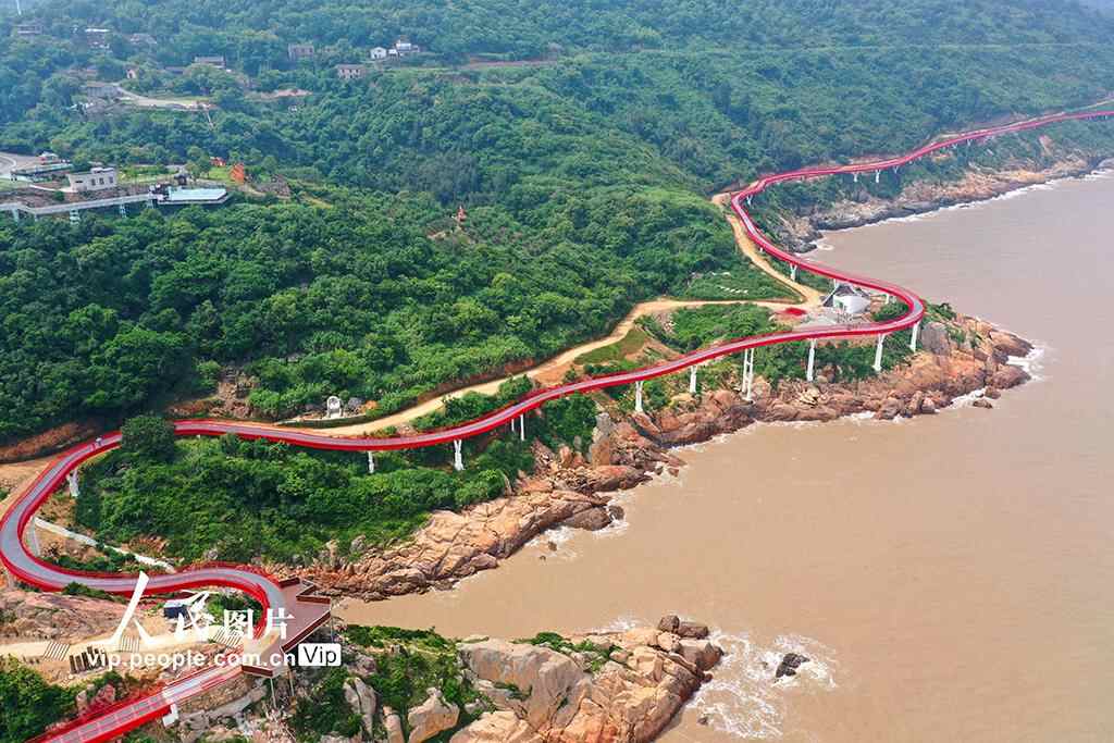 2025年6月2日,浙江省玉环市干江镇滨海绿道,游客们漫步其间,饱览壮美自然风光,乐享健康生活。