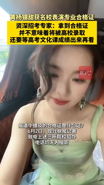 现代快报讯 近日,有媒体报道称,因“天价耳环”引发热议的黄杨钿甜已获得北京电影学院、中央戏剧学院和中国传媒大学三所院校的表演专业合格证。6月2日,现代快报记者致电上述三所院校招办,电话均无人接听。记者查询中国传媒大学本科招生网发现,黄杨钿甜出现在中国传媒大学2025年艺术类本科校考专业招生考试合格名单中,其位列表演专业第33名。