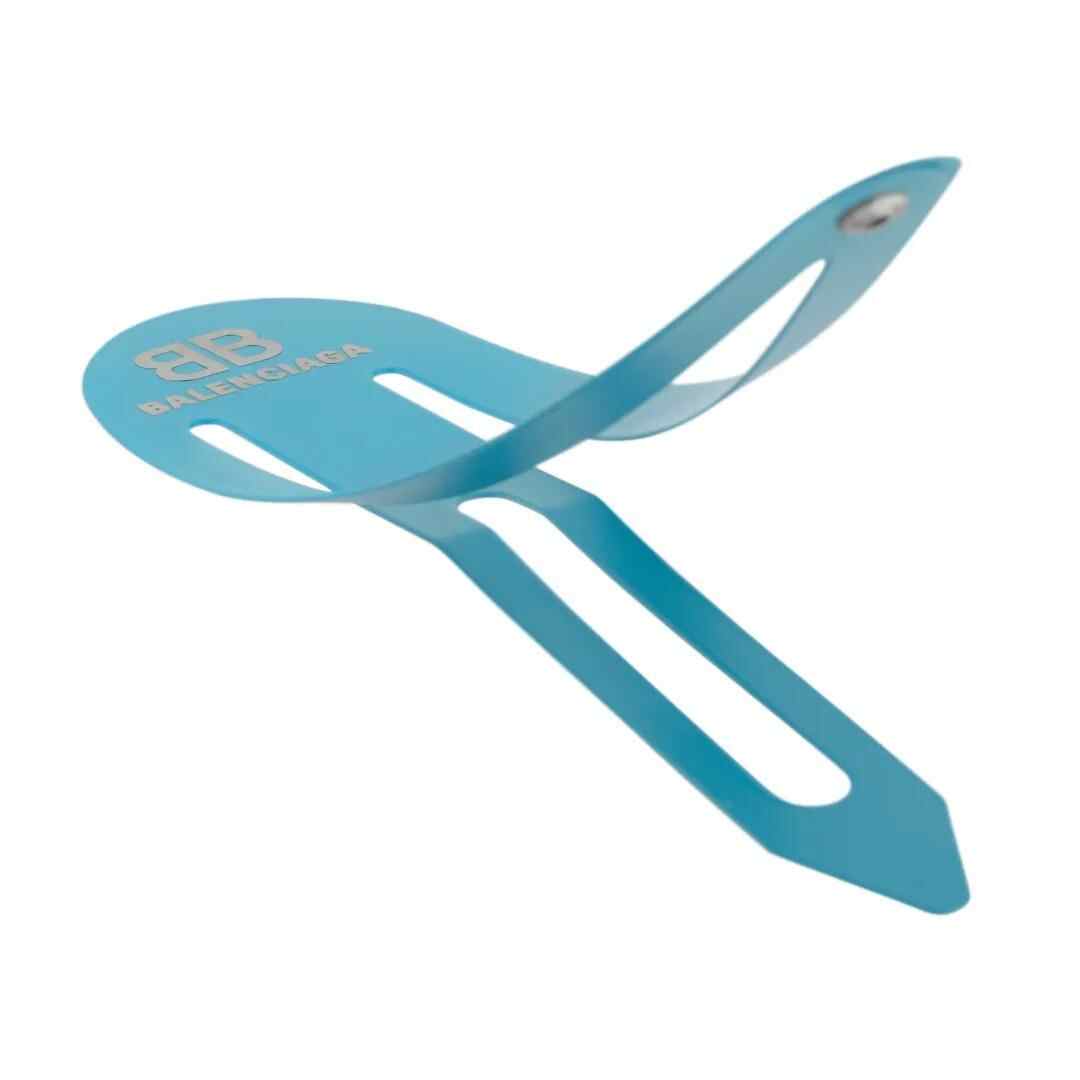 官网介绍称,该款发卡尺寸长9.9cm、高0.7cm、宽0.2cm,材质为不锈钢,上面印有“BB Balenciaga标识”。