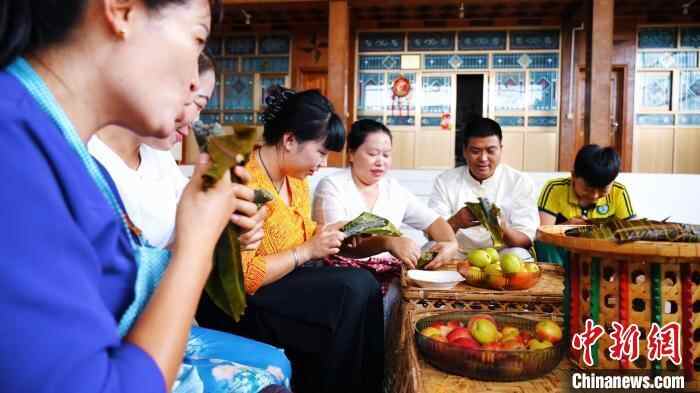 图为傣族民众正在品尝粽子。杨黎莹 摄