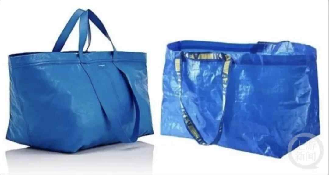 2017年5月巴黎世家首次推出了一款价值2145美元(14508人民币)的手提包,亮蓝色、超大尺码、宽肩带。由于外貌酷似宜家99美分(约合7元人民币)的蓝色大购物袋,引起市场极大轰动。