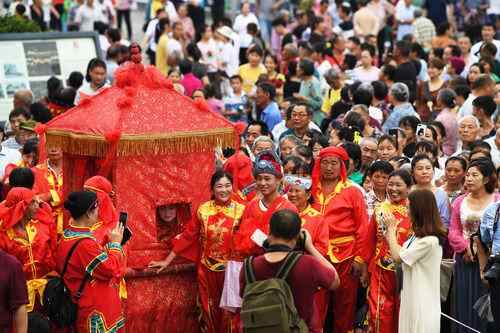 这是7月23日在西沱古镇拍摄的花轿表演现场。新华社记者王全超摄
