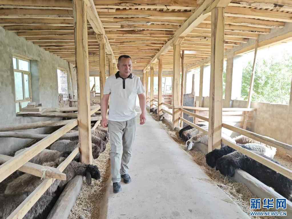图片说明:图为吐尔洪江在自家羊圈。新华社记者 胡林果 摄
