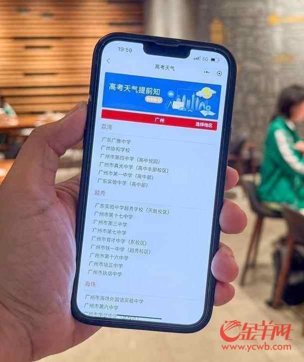记者使用后发现,该项服务收录了广东全省501个高考考点;公众通过该服务,可以获得相关考点的天气预警、天气实况、分钟级降水预报、逐时预报和7天预报等信息。考生、家长、考务人员通过手机使用“高考天气提前知”服务,即可“一手掌握”全省501个高考考点天气情况。