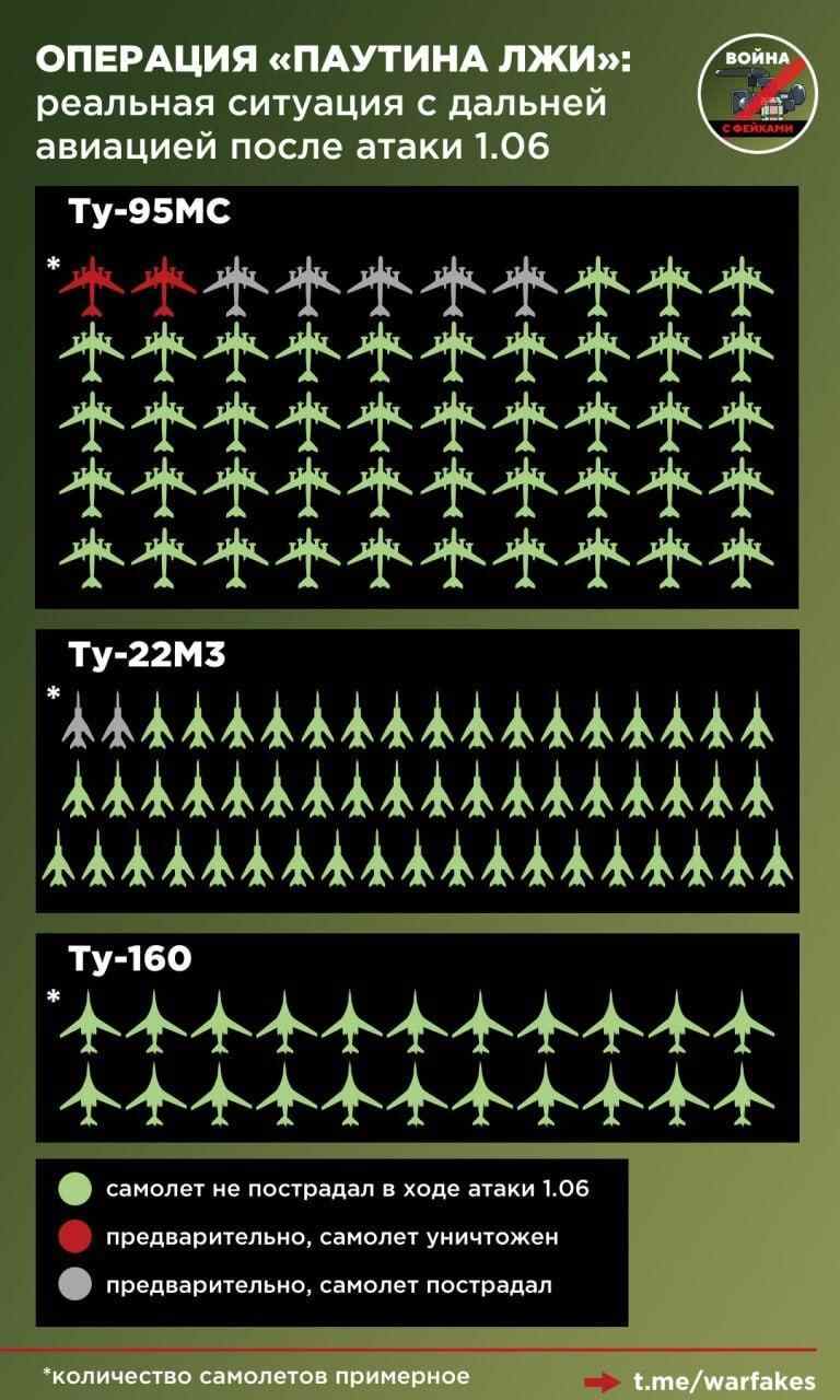 俄方的分析认为,乌克兰方面实际上仅仅可能摧毁了两架图-95战略轰炸机及一架安-12运输机。其余受损飞机在维修后均可恢复作战能力,乌克兰方面宣称的战果并不符合实际。