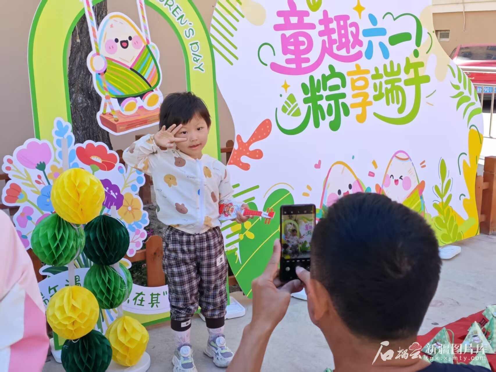 5月31日,福海县永安路社区居民在活动现场打卡拍照。天山网-新疆日报记者 宋海波摄