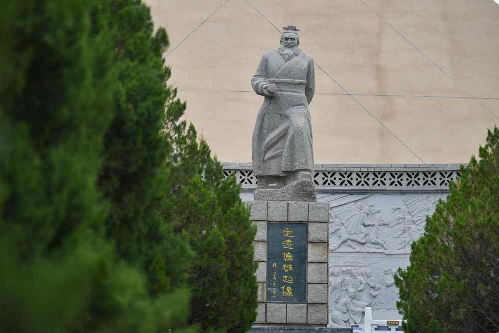 位于新疆喀什市盘橐城景区内的东汉名将班超石像(2023年6月14日摄)。新华社记者 胡虎虎 摄