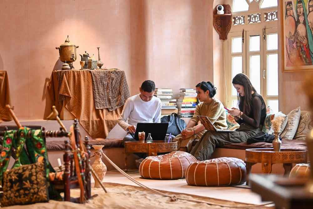 在新疆喀什古城景区,游客在麦吾兰·图拉克的咖啡馆休息(2023年4月17日摄)。新华社记者丁磊 摄
