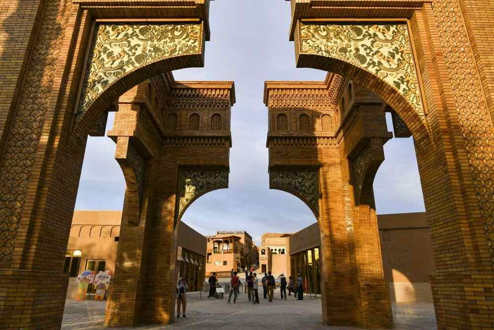人们在新疆喀什市盘橐城景区内游玩(2023年6月14日摄)。新华社记者 胡虎虎 摄