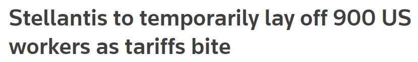 美国汽车行业巨头斯特兰蒂斯集团表示,由于关税政策对汽车行业产生严重影响,该公司决定裁撤其五家美国工厂的900名员工,并暂停加拿大和墨西哥的两家装配厂的生产业务。