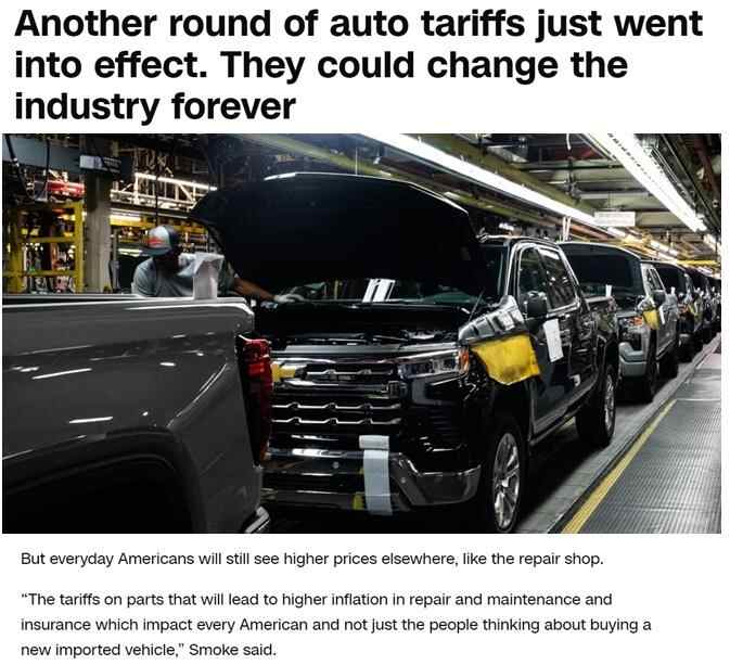美国有线电视新闻网报道称,对零部件加征关税意味着该行业将增加数百亿美元的新成本,而这些成本最终将转嫁到美国的汽车购买者和车主身上。
