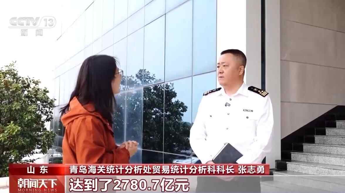 青岛海关统计分析处贸易统计分析科科长 张志勇:前4个月,青岛口岸对共建“一带一路”国家出口值达到了2780.7亿元,增速达到了15.5%,对中东国家市场出口值增速达到了20.4%。对拉丁美洲市场开拓成效也非常明显,其中对智利还有秘鲁的出口值增速也分别达到了39.4%和54.5%。