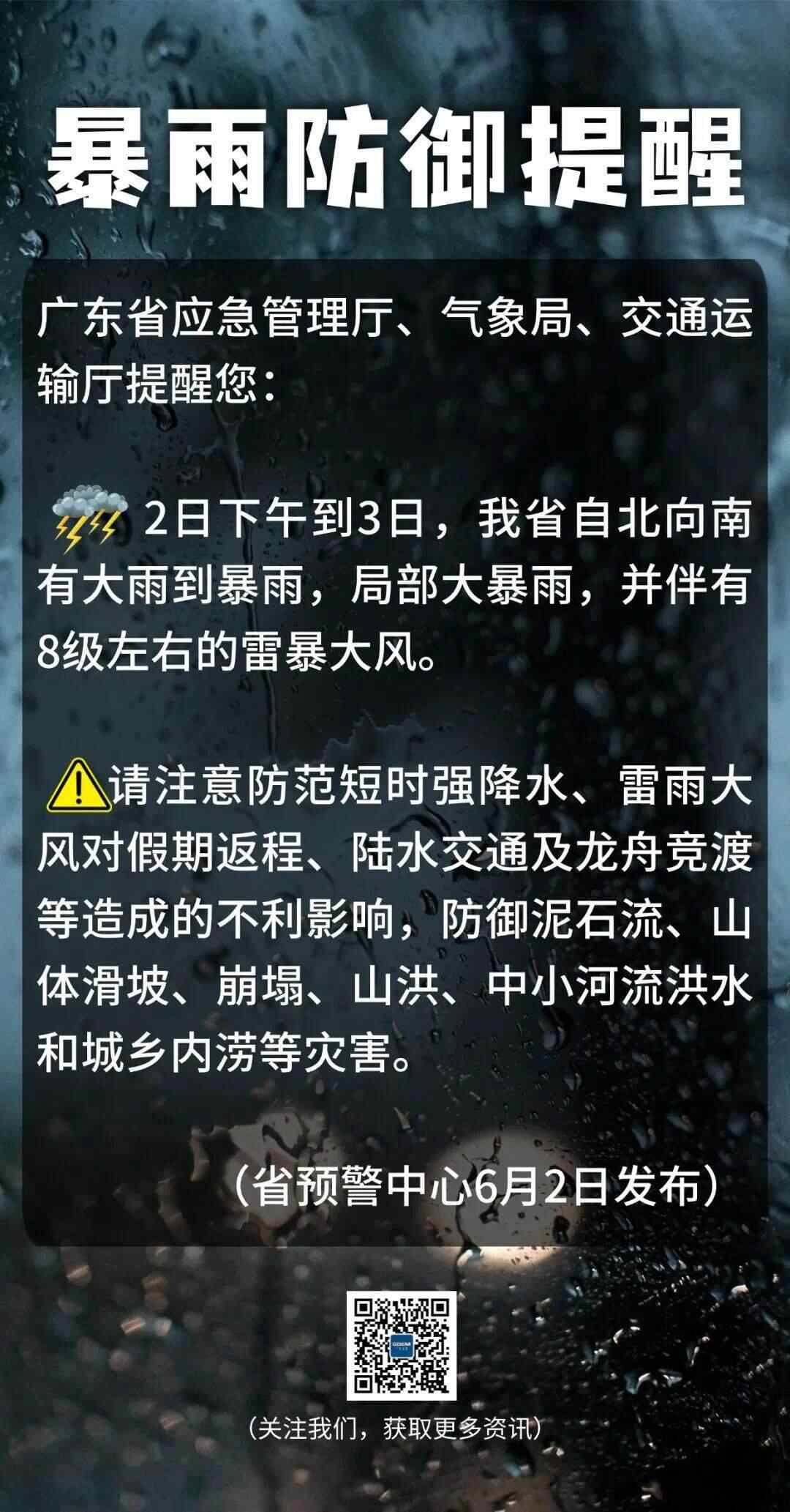 同时,广东省应急管理厅、气象局、交通运输厅联合发布暴雨防御提醒:
