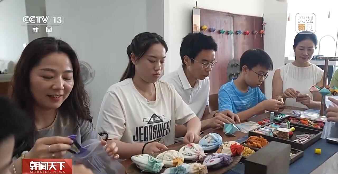 而在汨罗香囊非遗传承人的工作室,不少市民游客体验香囊制作,五彩丝线在大家的指尖不停翻转缠绕,一个简约精巧的“粽子”造型香囊便初现雏形。目前,预约体验服务已经排到了7月份。