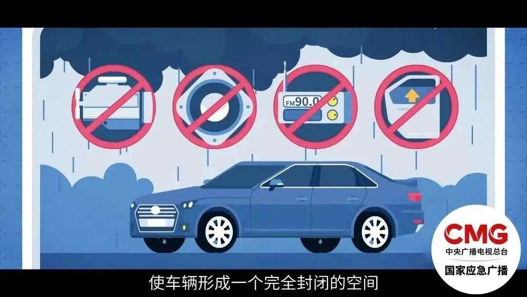 若在车内躲避,应关闭引擎、音响系统、收音机等,并紧闭所有车窗,使车辆形成一个完全封闭的空间。