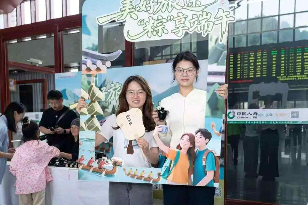 南昌站在候车厅内设置“粽情端午”打卡框,开展套粽子、制作粽子香包和知识问答等活动。有奖问答不仅让旅客获得旅途中的一份小惊喜,也让大家了解了更多铁路知识。