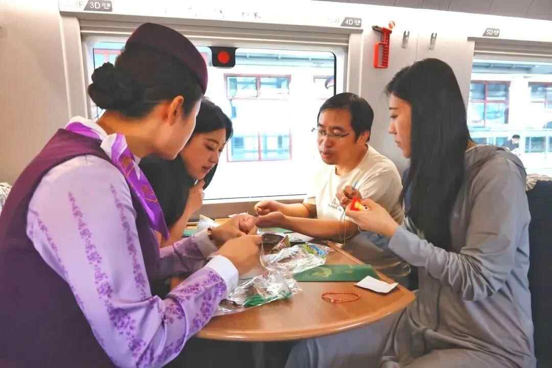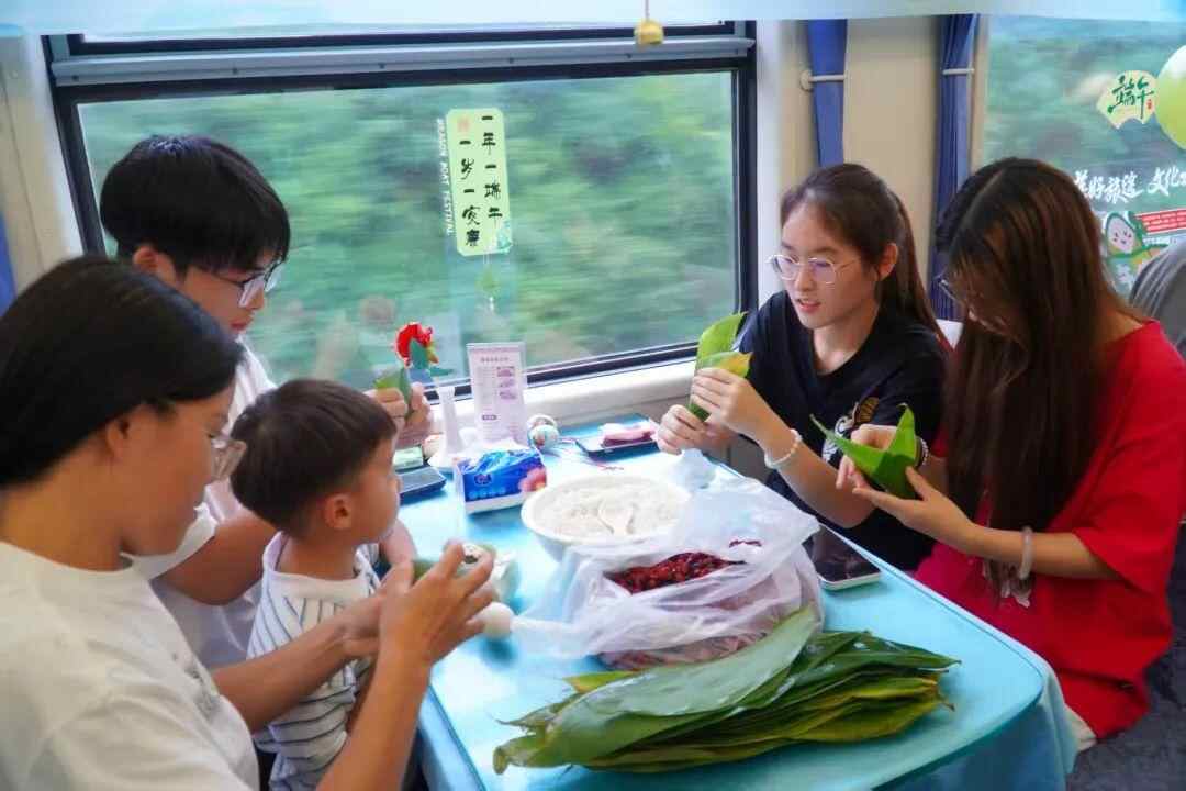 在北京南开往南昌西的G169次列车上,活动同样精彩纷呈。在“非遗零距离”民俗活动环节,列车工作人员和旅客一起动手包粽子、制作香囊,传递健康出行理念。