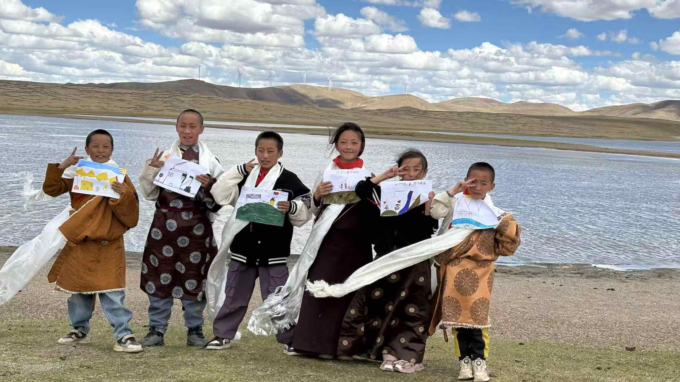 接下来再写点什么呢?围在一起的小脑袋们叽叽喳喳地提建议,“告诉北京的好朋友,我们这里有牦牛、羊群、马”“还有雄鹰、野狼、狐狸和土拨鼠”“很大很大的雪山、很多很多的湖泊”“别忘了告诉他们还有奇特的牛粪墙哈哈哈”……