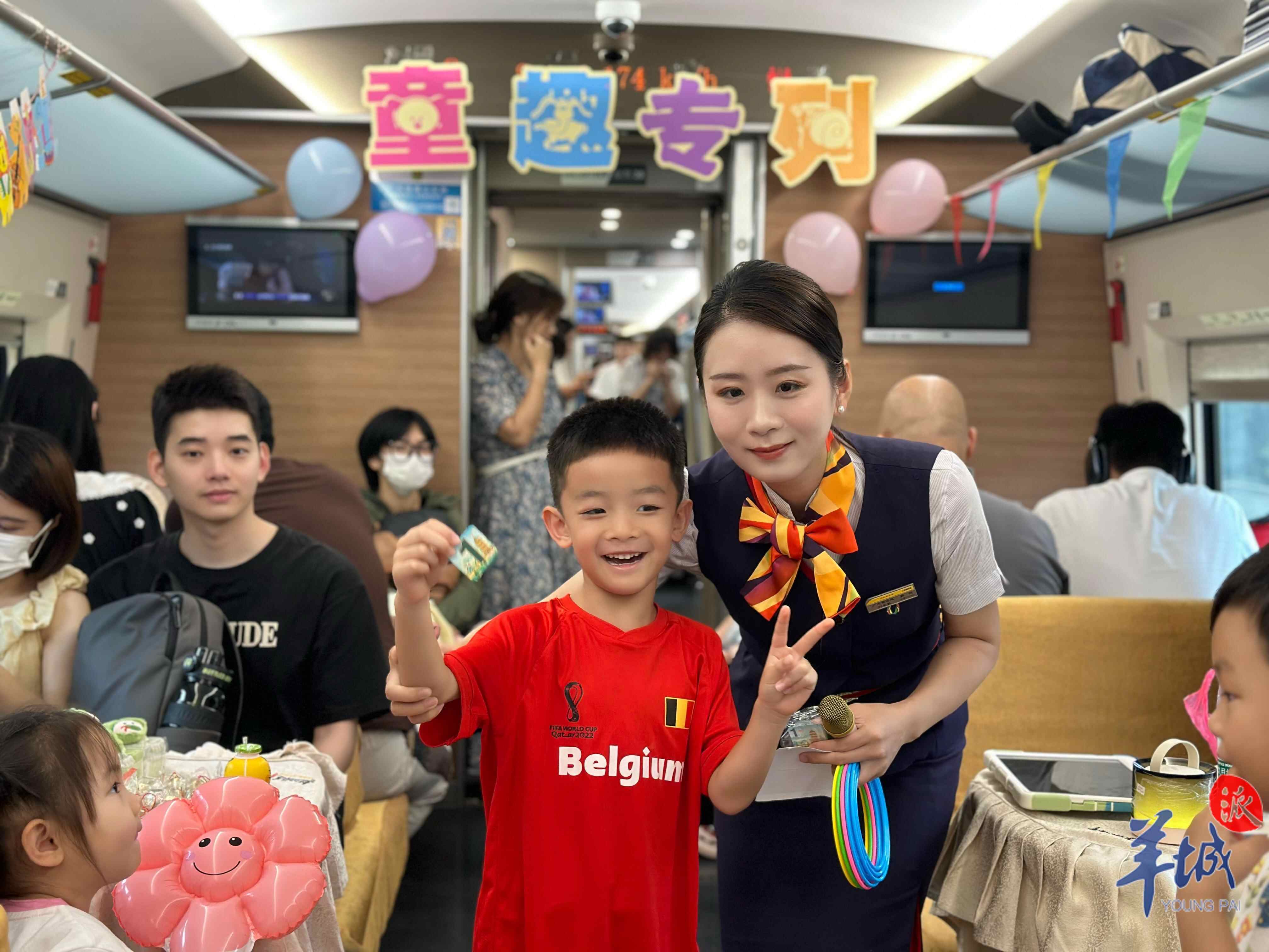 针对儿童旅客增多的情况,广铁集团站车单位推出多项特色爱心服务。汕头站以海洋文化为主题的儿童乐园,占地200多平方米,配备了攀爬、滑梯、滚珠墙、翻转墙、跷跷板、摇摇乐和陀螺椅等娱乐设施,可供候车的孩子们尽情玩耍。广州客运段在广州南至梅州西的G6353/6、G6355/4次高铁列车上设置“童趣车厢”,对餐车部分区域设计装扮,打造儿童专属活动区。同时在列车上配备急救药箱和尿不湿、婴儿湿巾等用品,确保在突发或有需要的情况下及时提供帮助,为亲子家庭提供更加暖心、舒适、安全的出行环境。