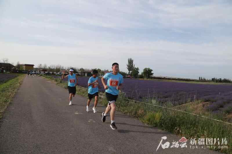 5月31日,霍城县“2025苏韵伊情·霞路相逢(霞2·芳香霍城)商学院越野接力赛”开跑。图为参赛选手跑过一片薰衣草园。石榴云/新疆日报记者 宋卫国 摄