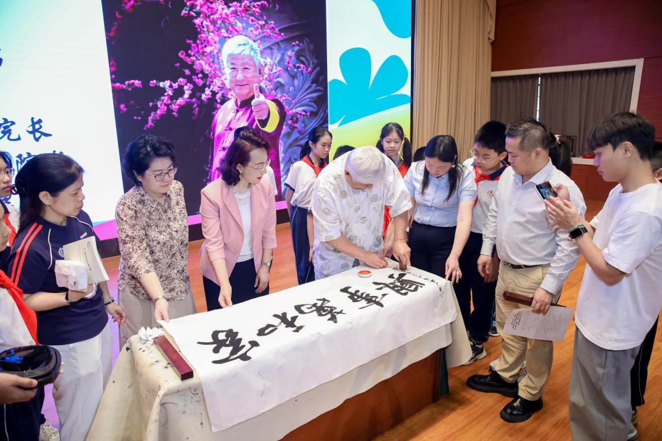 活动现场,广州市文联名誉主席乔平现场挥毫泼墨,为基地题写并赠送“家和万事兴”及“海芳和韵”书法作品,为基地注入以水润家、以文化人精神内核。随后,来自广东省第二人民医院、医疗机构的专家和负责人等“爱心妈妈”志愿者,通过开展《经营幸福家庭的“七个习惯”》《儿童过敏管理健康讲座》等讲座,普及儿童生长发育、常见病预防知识,着力为儿童解难事办实事。
