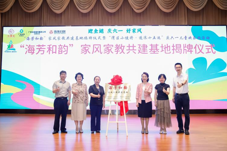 活动现场,由海珠区妇联、海珠区法院、琶洲街道办和水投城市服务公司共建的“海芳和韵”家风家教共建基地在水博苑揭牌。