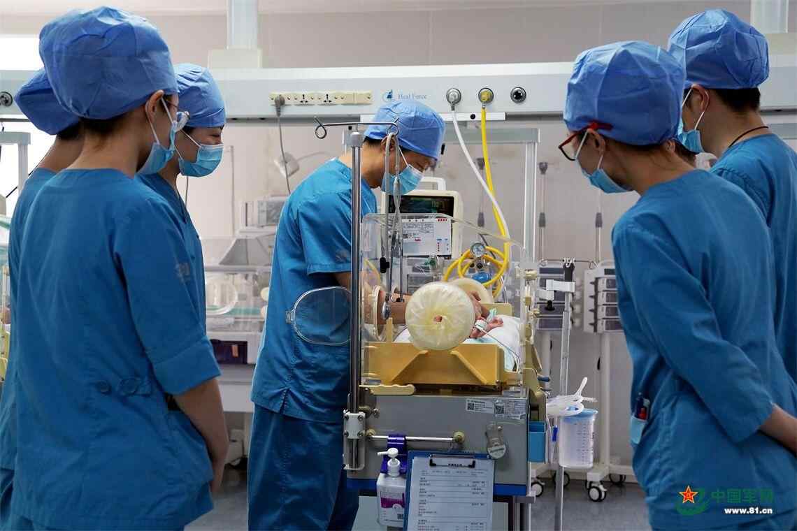 新生儿科医护人员在保温箱前观察新生儿状态。中国军网记者孙悦 摄