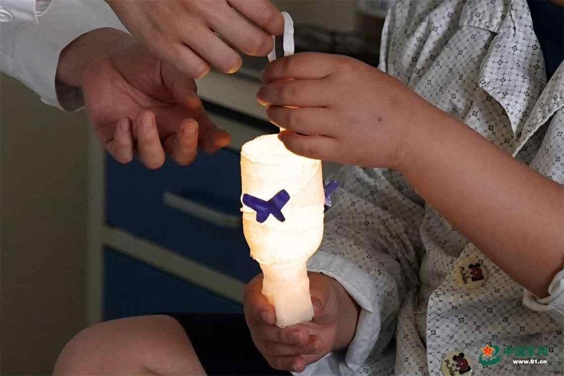 护士将星星灯递给军娃潼潼。 中国军网记者孙悦 摄