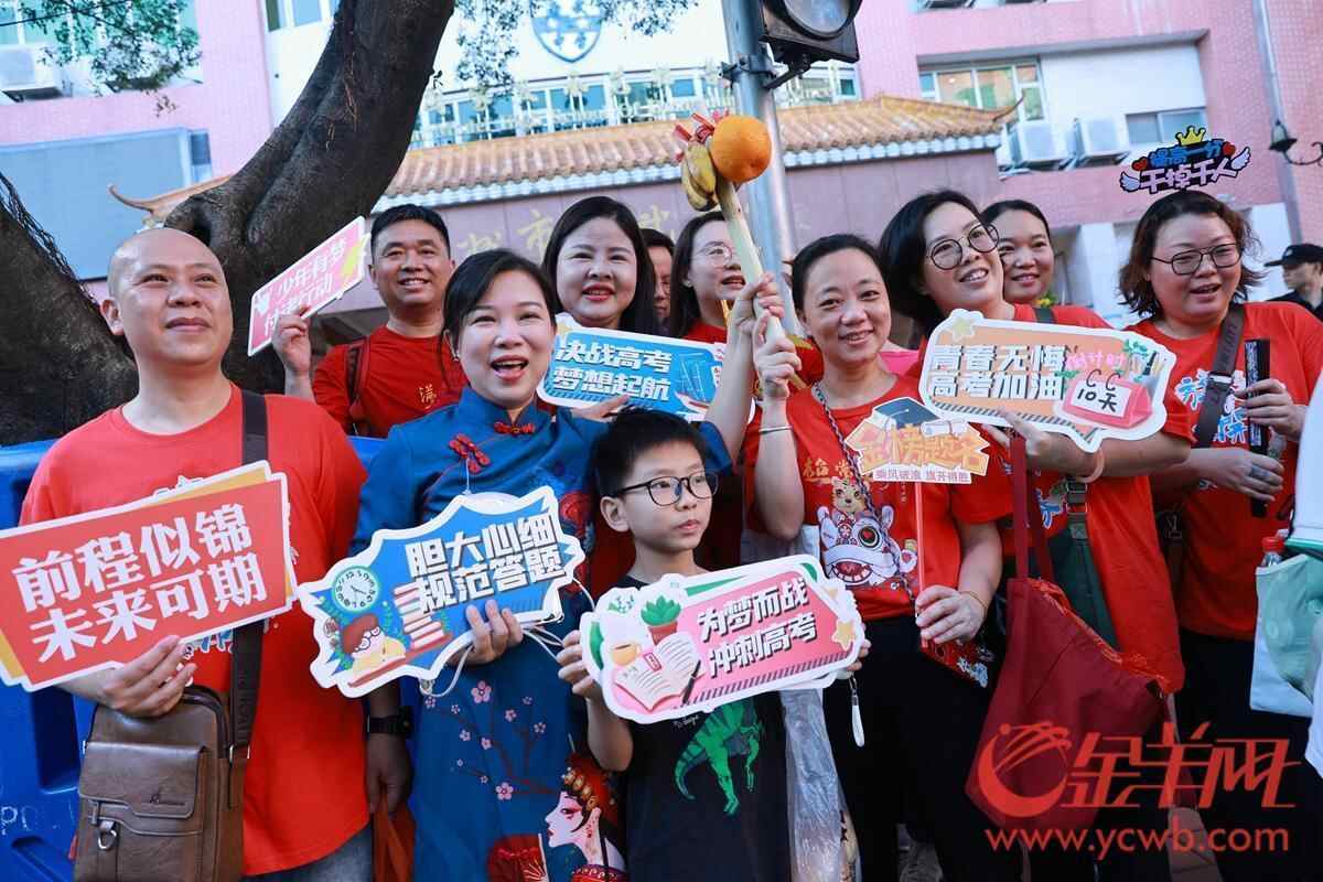2025年6月7日,高考第一天,广州南武中学考点,家长在考点门口为考生花式助威。羊城晚报全媒体记者 宋金峪 摄