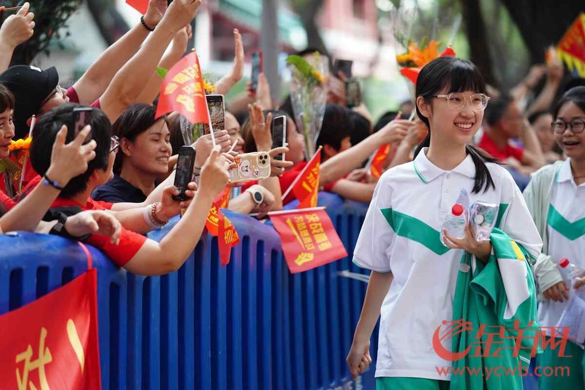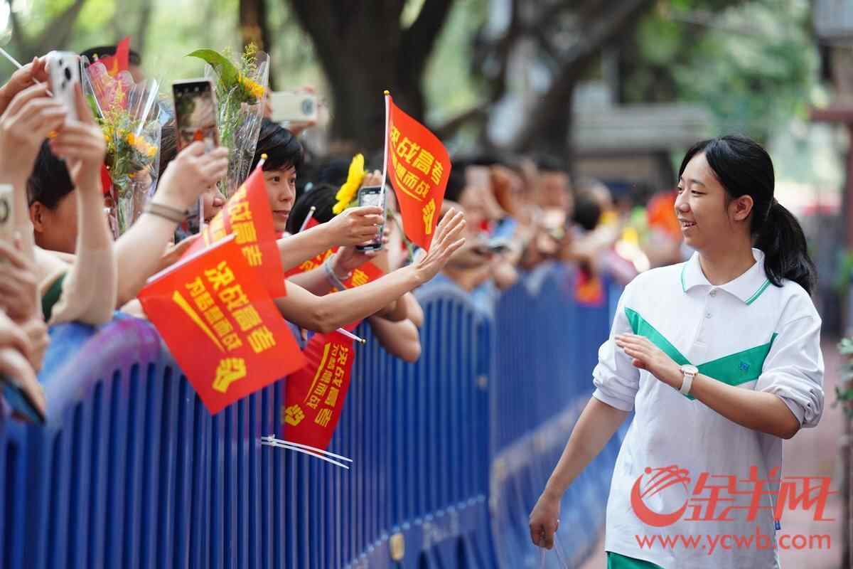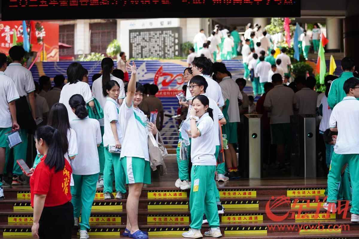 2025年6月7日,高考第一天,广州南武中学考点,考生进入考场前和考场外的家长打招呼。 羊城晚报全媒体记者 宋金峪 摄