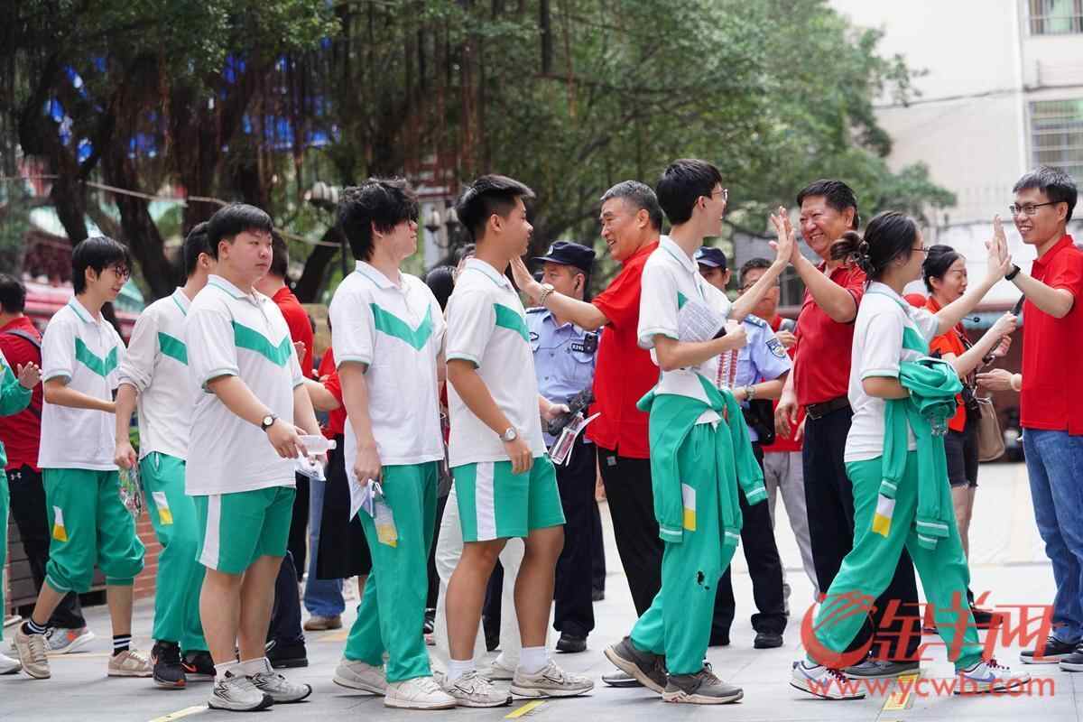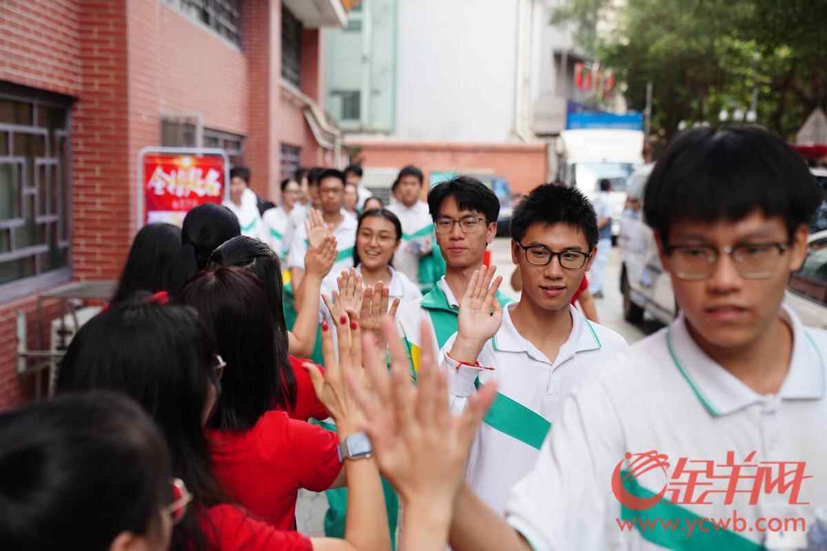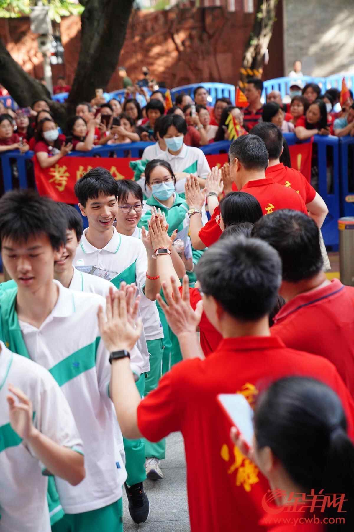 2025年6月7日,高考第一天,广州南武中学考点,考生进入考场前和老师击掌。 羊城晚报全媒体记者 宋金峪 摄