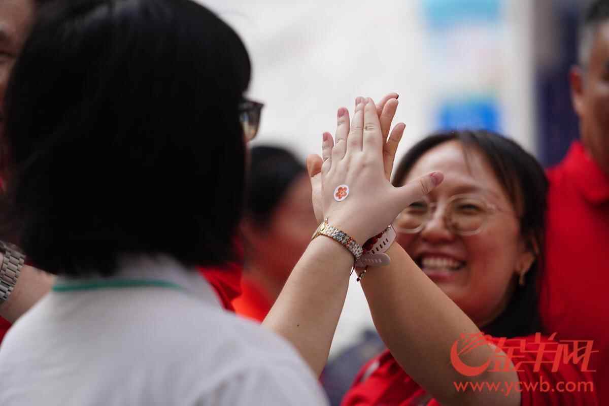 2025年6月7日,高考第一天,广州南武中学考点,家长在考点门口为考生花式助威。羊城晚报全媒体记者 宋金峪 摄