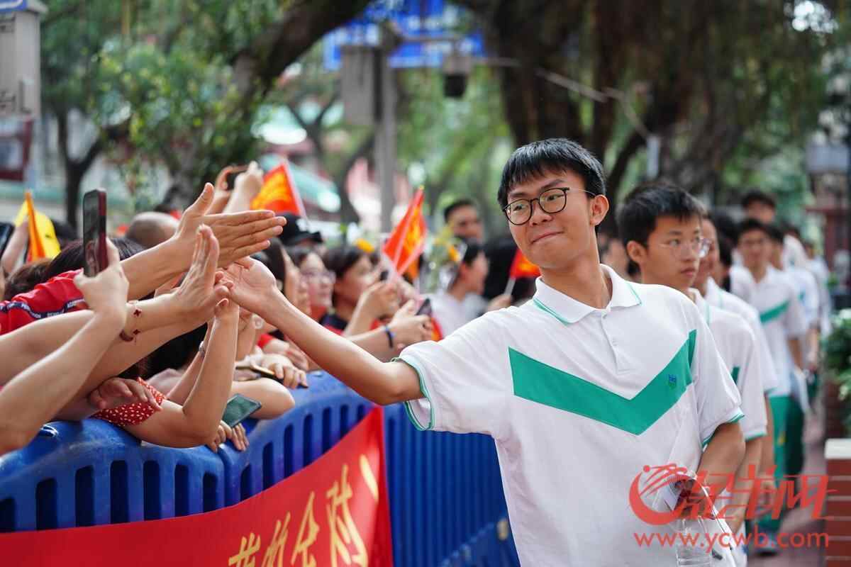 2025年6月7日,高考第一天,广州南武中学考点,考生进入考场前与家长击掌加油。 羊城晚报全媒体记者 宋金峪 摄