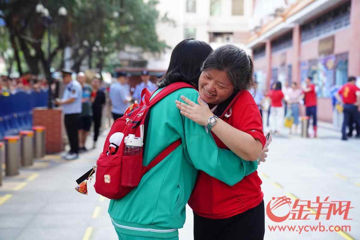 2025年6月7日,高考第一天,广州南武中学考点,考生与老师拥抱。 羊城晚报全媒体记者 宋金峪 摄