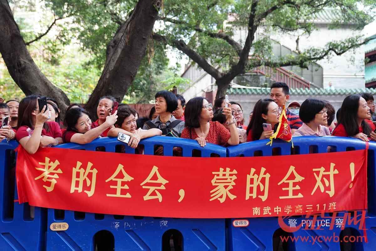 2025年6月7日,高考第一天,广州南武中学考点,家长在考点门口为考生花式助威。羊城晚报全媒体记者 宋金峪 摄