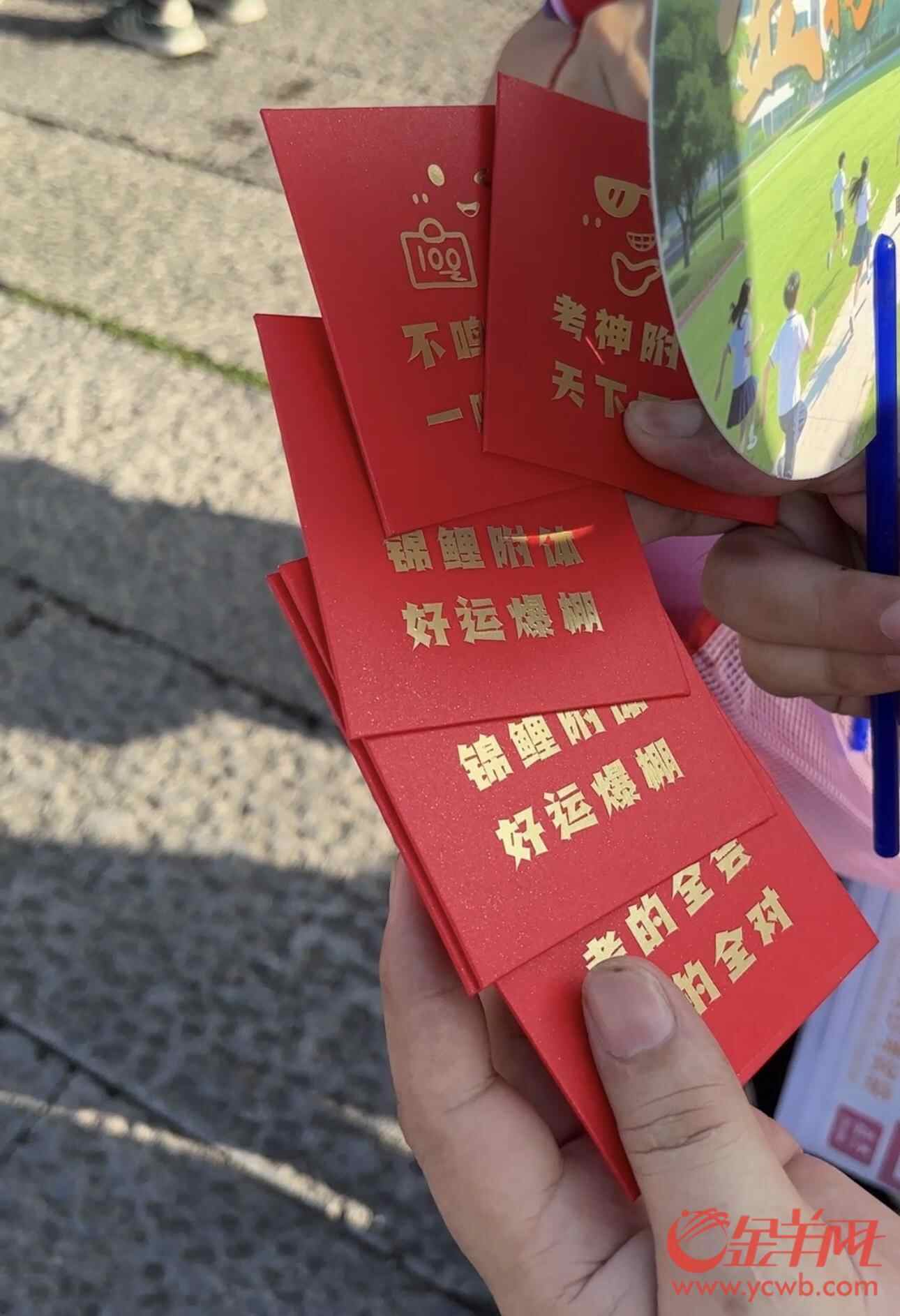 6月7日是2025年高考第一天,在广州市番禺区广东仲元中学第二校区门口,高三班主任潘老师为班上赴考的同学发放资料卡,同时还特意为同学们准备了红包。