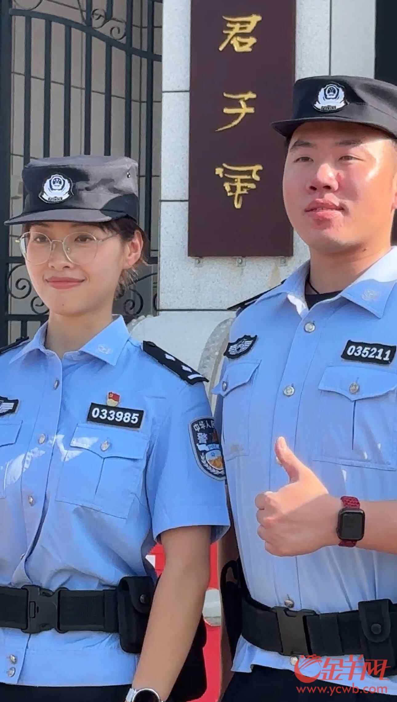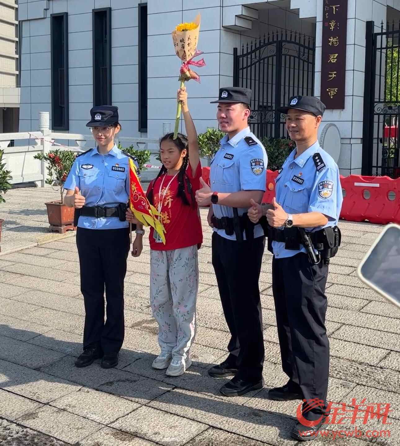 6月7日,2025年高考第一天,在广州市番禺区广东仲元中学第二校区门口,三位警号尾号为“985”“211”的民警成为现场家长、学生的热门合影对象。
