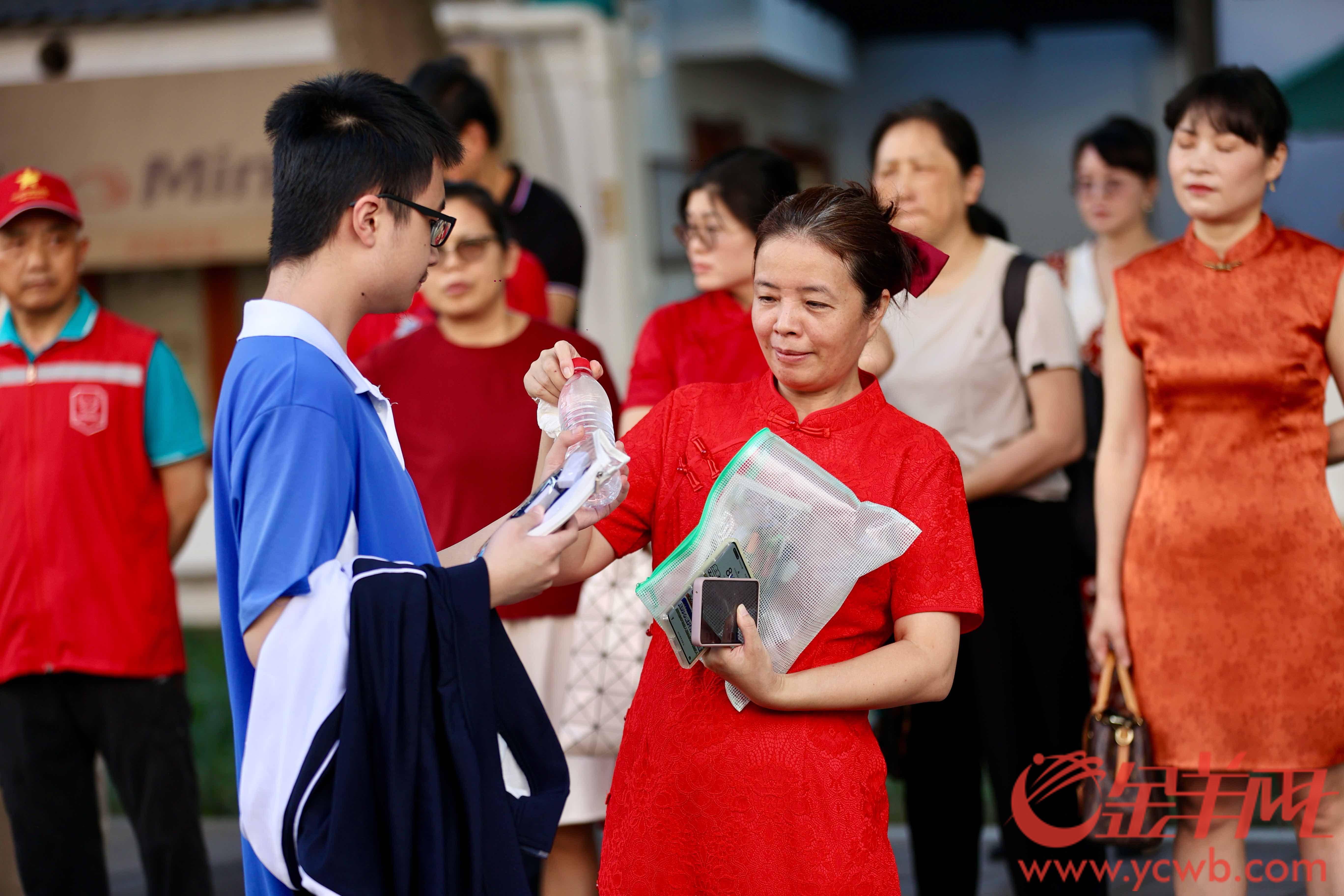 记者看到不少前来送考的家长有的身着鲜艳的红色衣服,寓意着“开门红”;有的家长与孩子轻声交谈,互相鼓励,试图用轻松的话语帮助孩子缓解内心的压力。