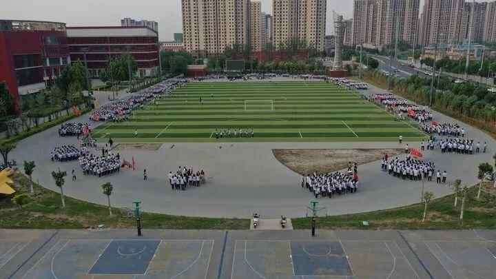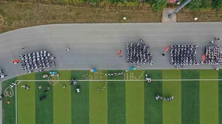 记者在现场看到,每个班级在操场为学生们准备了两个鸡蛋和一根香肠,寓意满分,并在操场摆出“No.1”“750”“必胜”等造型,为学生加油。