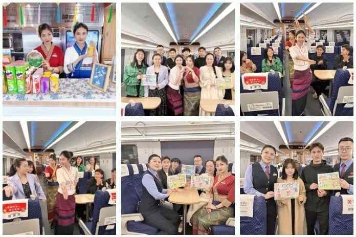 在昆明至红河的C566次列车上,工作人员用舞蹈表演和画报向旅客展示云南民族文化。