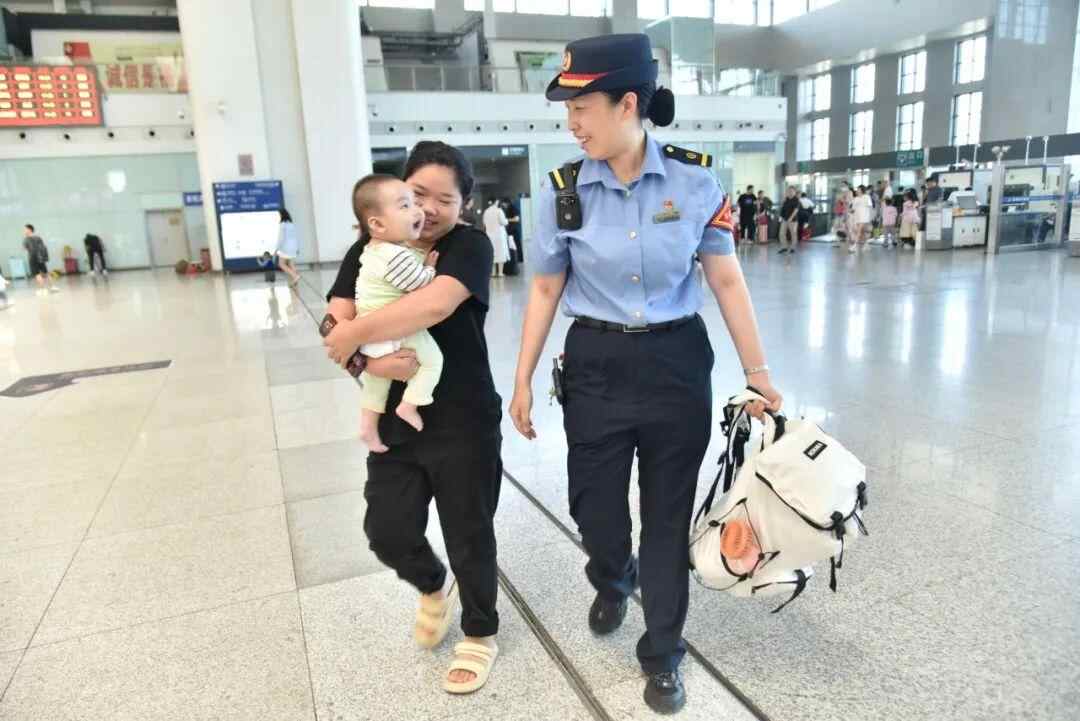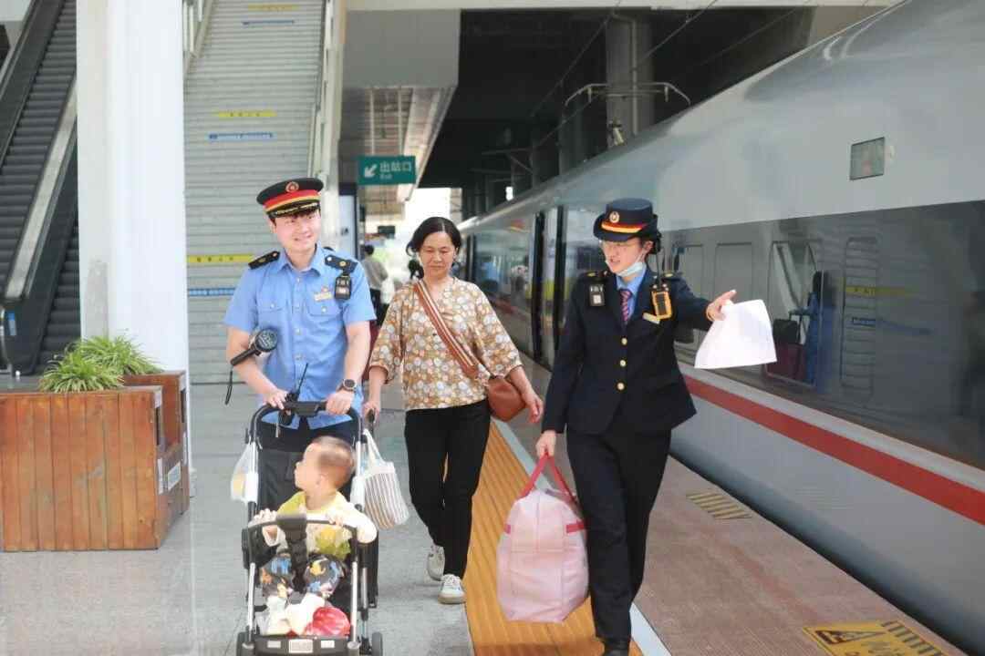 赣州西站工作人员为带娃出行的旅客提供温馨服务。