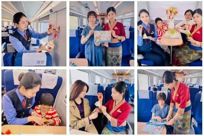 在D252次列车上,乘务人员邀请旅客制作手工及端午节手抄报,感受中华优秀传统文化。