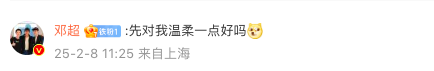 随后,邓超在评论区留言:先对我温柔一点好吗?