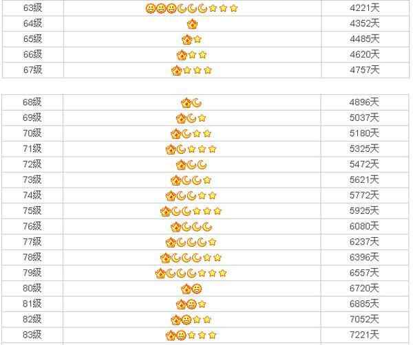 等级从1颗星星起步,按照4星星=1月亮、4月亮=1太阳、4太阳=1皇冠的递进关系累积成长,最高可达到4皇冠。其中,1皇冠相当于64级,每个等级的提升都需要用户持续在线积累时长。