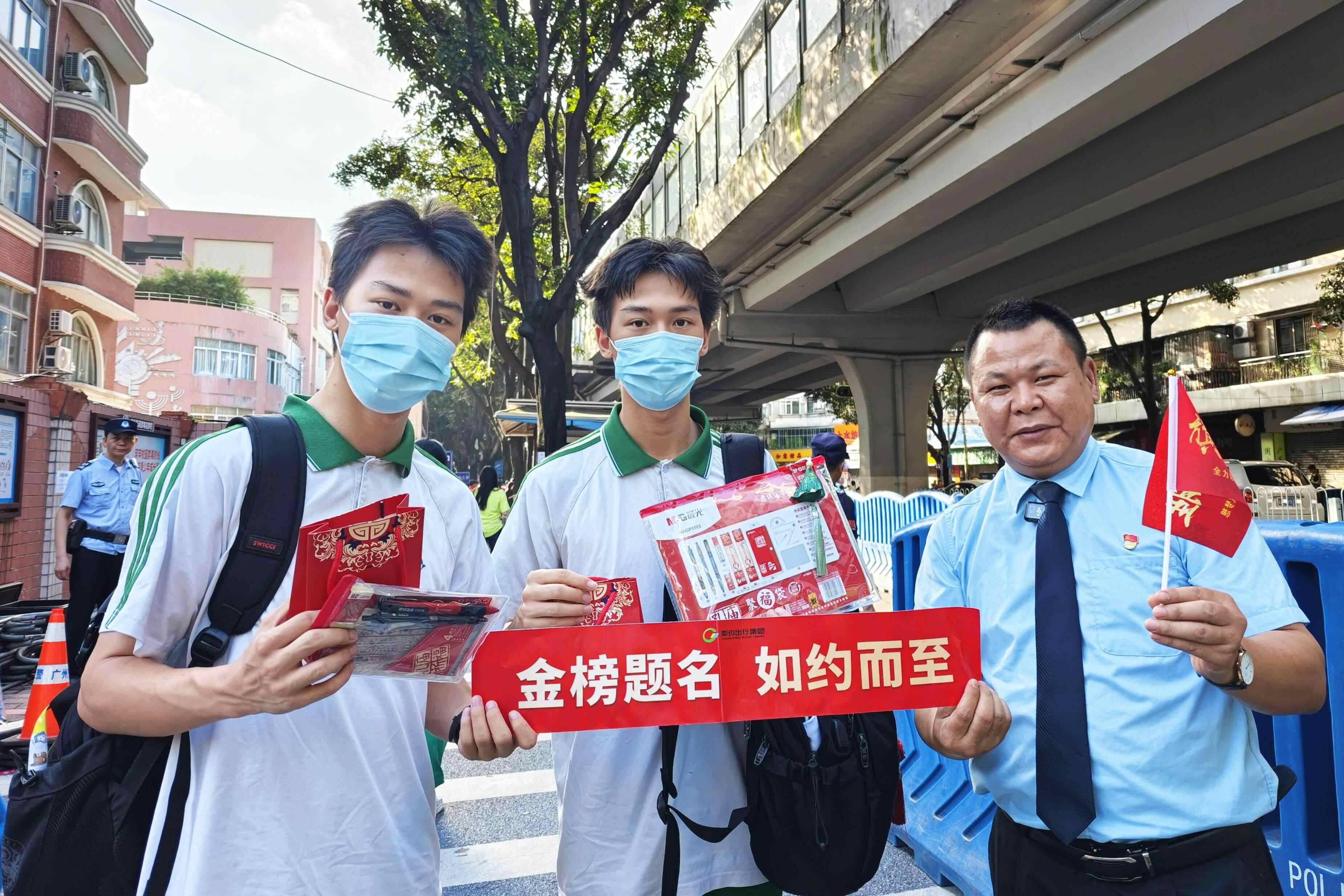 到达海珠区外国语实验中学考场后,荣文锋把准备好的粽子与苹果送给考生家长,祝这对兄弟考生顺利考上理想的大学。“看到他俩奋斗的样子,就想起了我的两个孩子,能护送考生筑梦前行,为高考出一份力,我感到非常光荣。”荣文锋自豪地说。