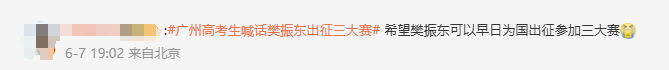6月7日,广州市第七中学考点,考生邹同学在结束数学科目考试后,在考场外喊话,希望樊振东可以早日代表国乒出征世界三大赛。