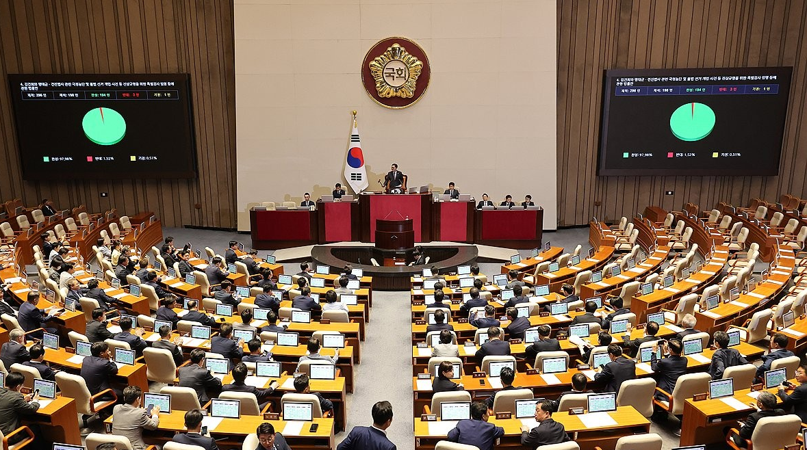 韩国国会5日举行全体会议,通过了旨在调查前总统尹锡悦内乱真相的“内乱特检法”。