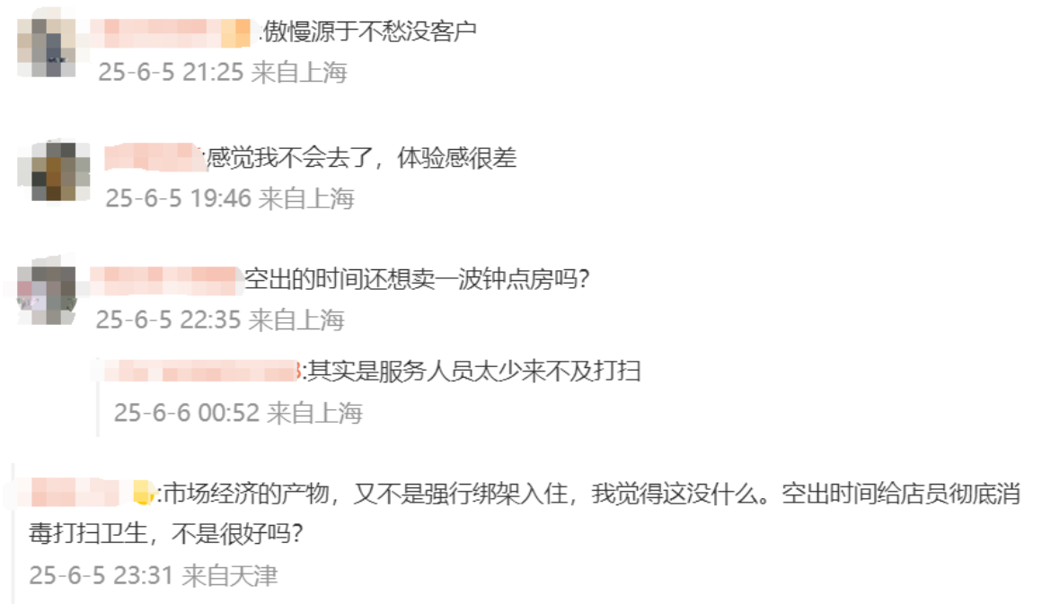 对此许多网友感到不解,为什么从退房到入住前后相差长达5小时?有网友表示“4点才能入住让人很不爽”,也有网友表示“留足时间给服务人员打扫挺好”。