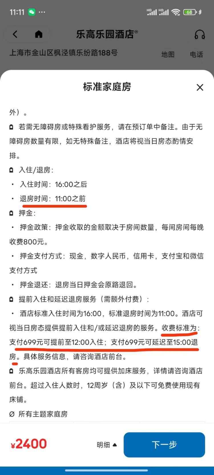 5日,上海乐高乐园酒店向记者证实的确如此,“目前酒店政策就是这样的,提前入住或者延迟退房都要支付699元的费用。如果需要提前入住加延迟退房,要支付两个699元。”