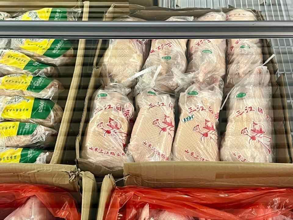 记者在济南维尔康肉类水产批发市场走访发现,市场内贩卖白条鸭的商户并不多,很多贩售家禽制品的商户多以分割好的鸡翅、鸭翅、鸭腿、鸭胗等制品为主。一位商户告诉记者,目前店里的白条鸭有多种规格,以二斤二两的为例,一箱售价为75元,10只装,平均一只也就7.5元。而其他几家商户报价在68元-85元不等。而在1688批发网站上,二斤二两白条鸭10只/箱规格的报价在95元-170元不等。